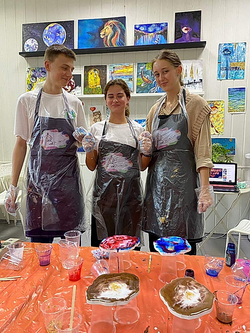 Стоимость: 2000₸./чел (флюид-арт на холсте 30/30),