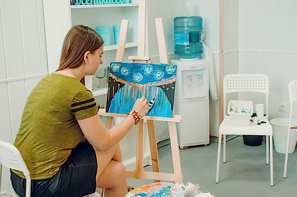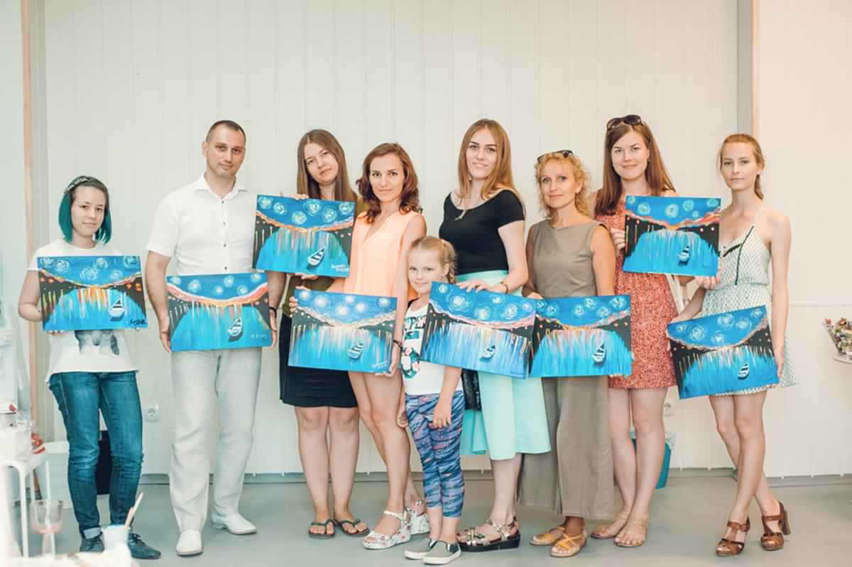 «Арт-вечеринка» - это вечер,где даже гости, которые никогда не Pin-Up кисти в руках, за 3 часа создадут настоящую картину! С нуля! Под руководством опытного художника-преподавателя!