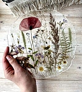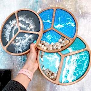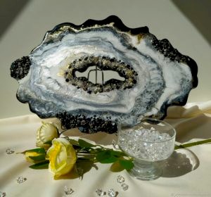 Картины и предметы декора создаются специальной художественной смолой с добавлением различных красителей, пигментов, порошков, Pin-Up кристаллов и других специальных добавок.